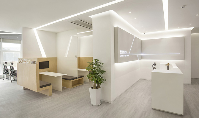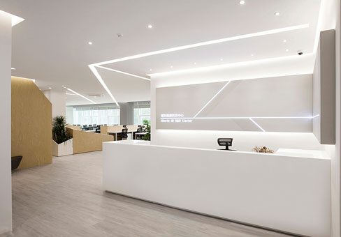 上海辦公室裝修公司案例:簡約白作為全新的品牌色,代表著青春、創(chuàng)造力、活力和創(chuàng)新。線條作為主要元素被用在品牌logo和室內(nèi)設(shè)計中。