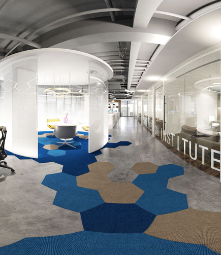 上海辦公室裝修公司案例:不同的材料和照明為每個層次和活動帶來溫暖和個性。循環(huán)模式提供了各種移動和居住空間的體驗(yàn)。