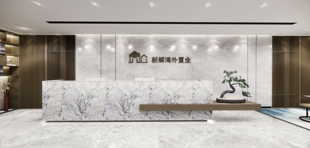 上海裝潢公司案例:與辦公室設(shè)計不同,此類空間用灰色石材與木色格柵遙相呼應(yīng),彌散出絲絲的東方意蘊(yùn),墻面著以燈光嵌入其間,宛如初春的金陵。